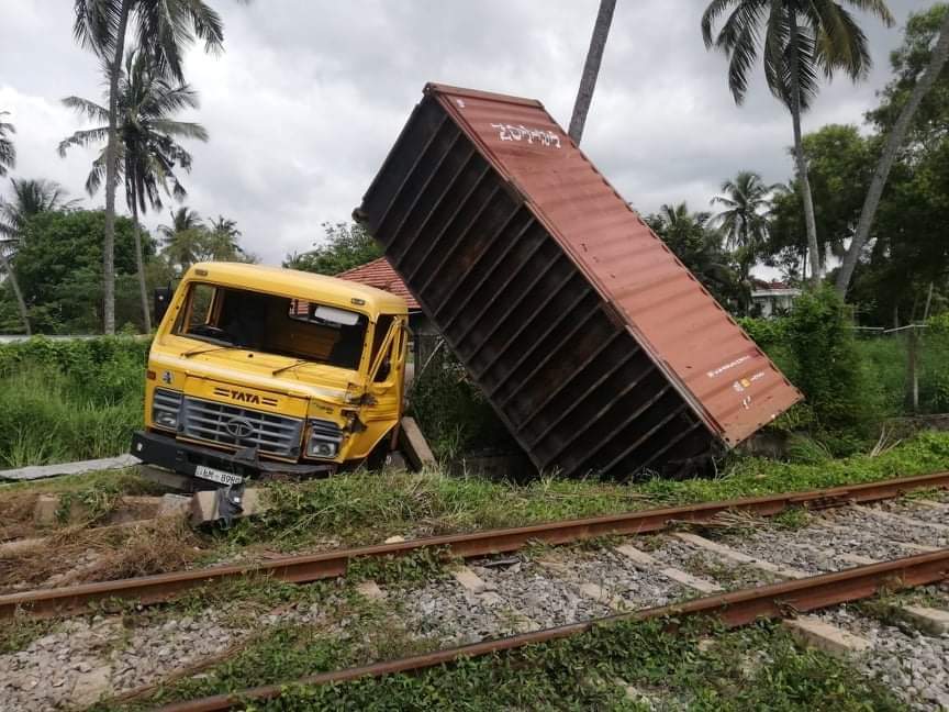 කන්ටේනර් රථයක් දුම්රියක ගැටී අනතුරක්