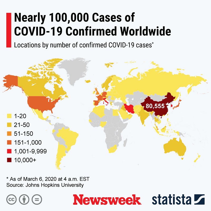 මේ වන විට ලොව පුරා සිටින කොරෝනාවෛරස ආසාදිතයන් සංඛ්යාව 100,000 ඉක්මවා තිබේ.