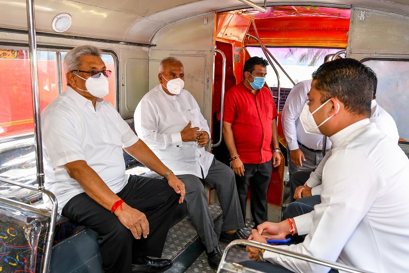 බස් රථවල ගුණාත්මක ප්‍රමිතිය නිරීක්ෂණය කළ ජනාධිපතිතුමා ශ්‍රී ලංකා ගමනා ගමන මණ්ඩලයේ සේවයකයන් සමග සුහද කථා බහක නිරත වෙමින් ඔවුන් දිරිමත් කළේය.