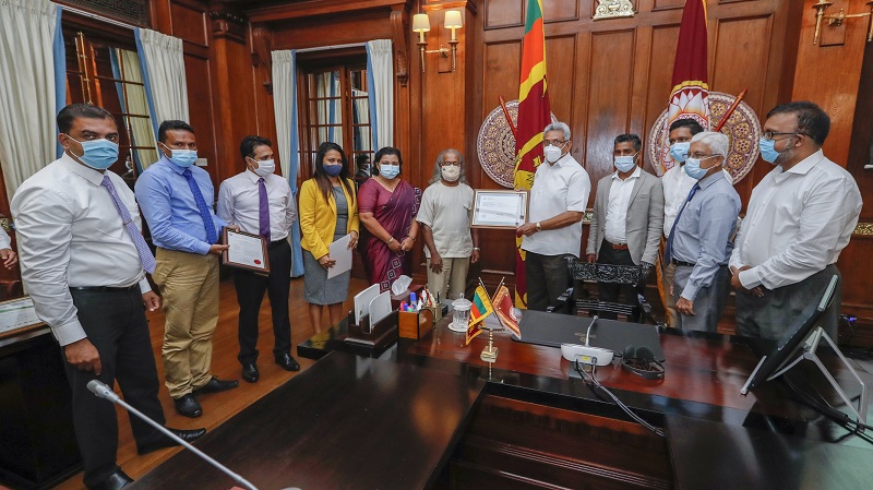 “සෞභාග්යයේ දැක්ම” ප්රකාශයේ පරිසර ප්රතිපත්ති සම්පාදන කමිටු නියෝජිතයෝ අද (16) පෙරවරුවේ ජනාධිපති කාර්යාලයේ දී ජනාධිපතිවරයා වෙත සහතිකය පිළිගැන්වූහ.