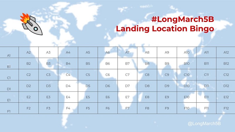 චීන රොකට්ටුව ඇස්ට්‍රියාග්‍රාෆ් සිතියමේ සොයාගත හැකි අතර එය CZ-5B ලෙස නම් කර තිබේ.