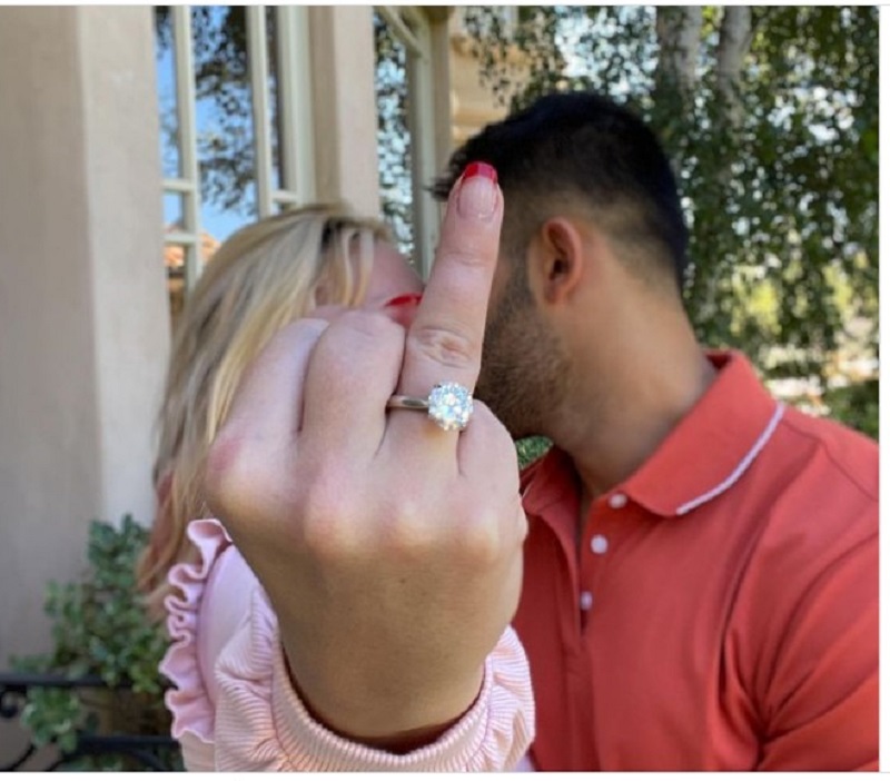 මෙම යුවළ මුදු හුවමාරු කරගත් බව පෙන්වන වීඩියෝවක් සෑම් ඉන්ස්ටග්රෑම් හි පළ කළේය.
