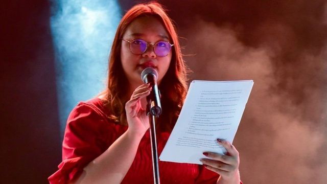 වේදිකාව මත පෙනී සිටි පනසයා සිතිජිරාවත්තනකුල් (Panusaya Sithijirawattanakul) තායිලන්ත රාජ්යත්වයට විවෘත අභියෝගයක් කළාය.