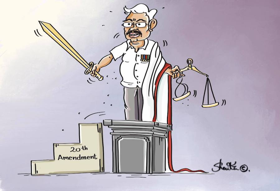 දැන් ලංකාවේ පාර්ලිමේන්තුවට ඉදිරිපත් කර තිබෙන 20 වැනි සංශෝධනයෙ සම්මත කර ගත් පසුව මෙරට පාර්ලිමේන්තුවට සිදුවිය හැකි අලකලංචිය ද වැඩි වෙනසක් නොවන්නට පුලුවන. අවුරුදු 100කට පමණ පසුව අද ලංකාවේ විසි වැනි සංශෝධනයෙන් කරන්නට යෝජනා කරන්නේ ද මෙවැනිම වෙනස්කම් ටිකක් වීම විමතිය දනවයි. ලංකාවේ ජනාධිපතිවරයාට නීතී සෑදීමේ බලය ලබා දෙන යෝජනා 20හි අඩංගුය. ජනමත විචාරණයක් මගින් හදිසි පනත් සම්මත කිරීමේ අයිතිය, …