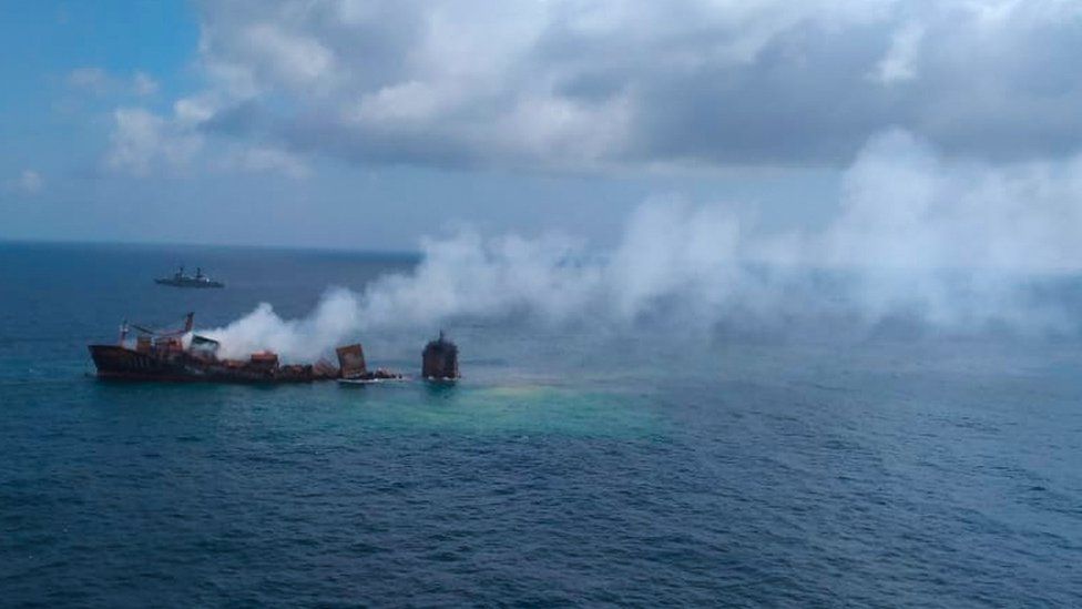 විශාල පාරිසරික ව්යසනයක භීතිය මධ්යයේ රසායනික ද්රව්ය පටවන ලද X-Press Pearl නෞකාව ශ්රී ලංකාවේ වෙරළට ඔබ්බෙන් ගිලී යමින් තිබෙන බව ලෝ ප්රකට බී.බී.සී ජාත්යන්තර වෙබ් අඩවිය අද (02) වාර්තා කළේය.